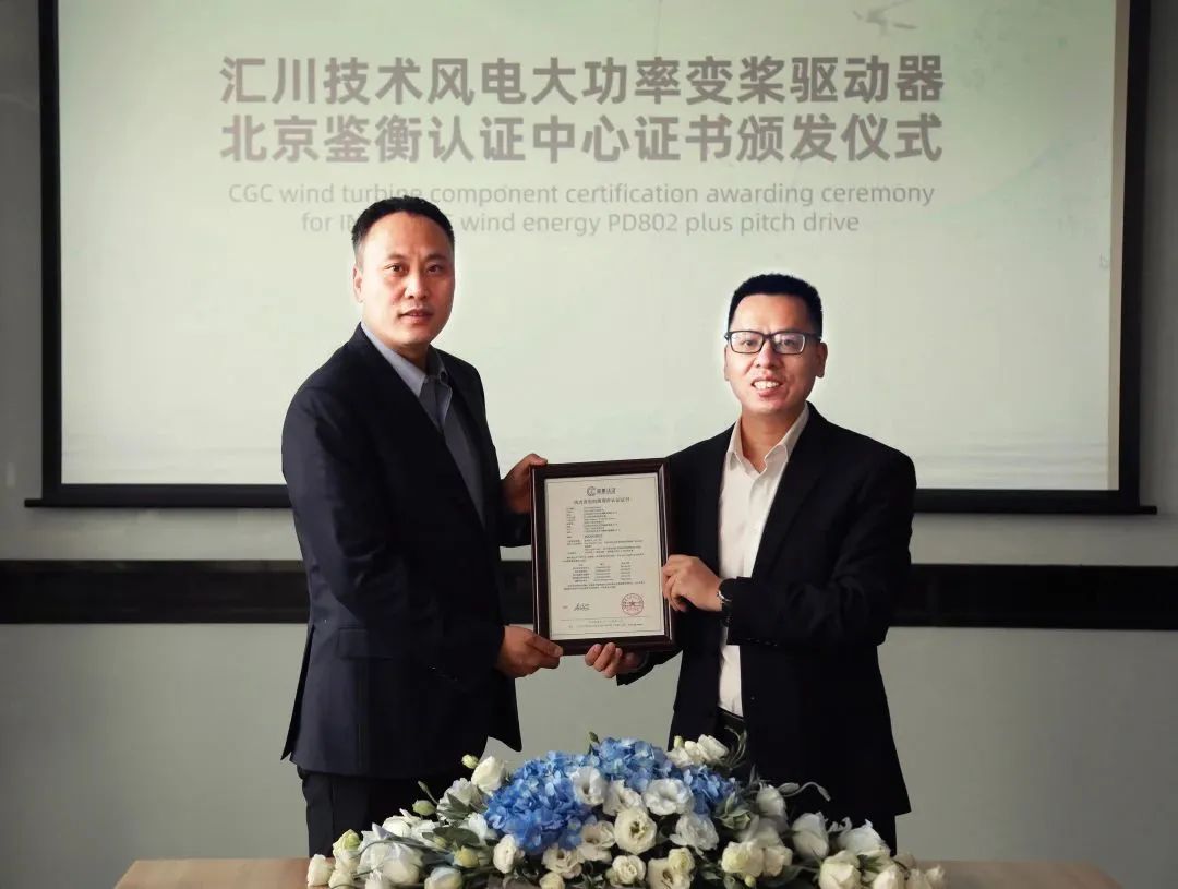 12月12日,匯川技術自主研發的風電大功率變槳驅動器通過權威認證機構北京鑒衡認證中心認證,并獲得該認證中心頒發的“風力發電機組部件認證證書”,這是我國首個為風電大功率變槳驅動器頒發的鑒衡認證證書。
